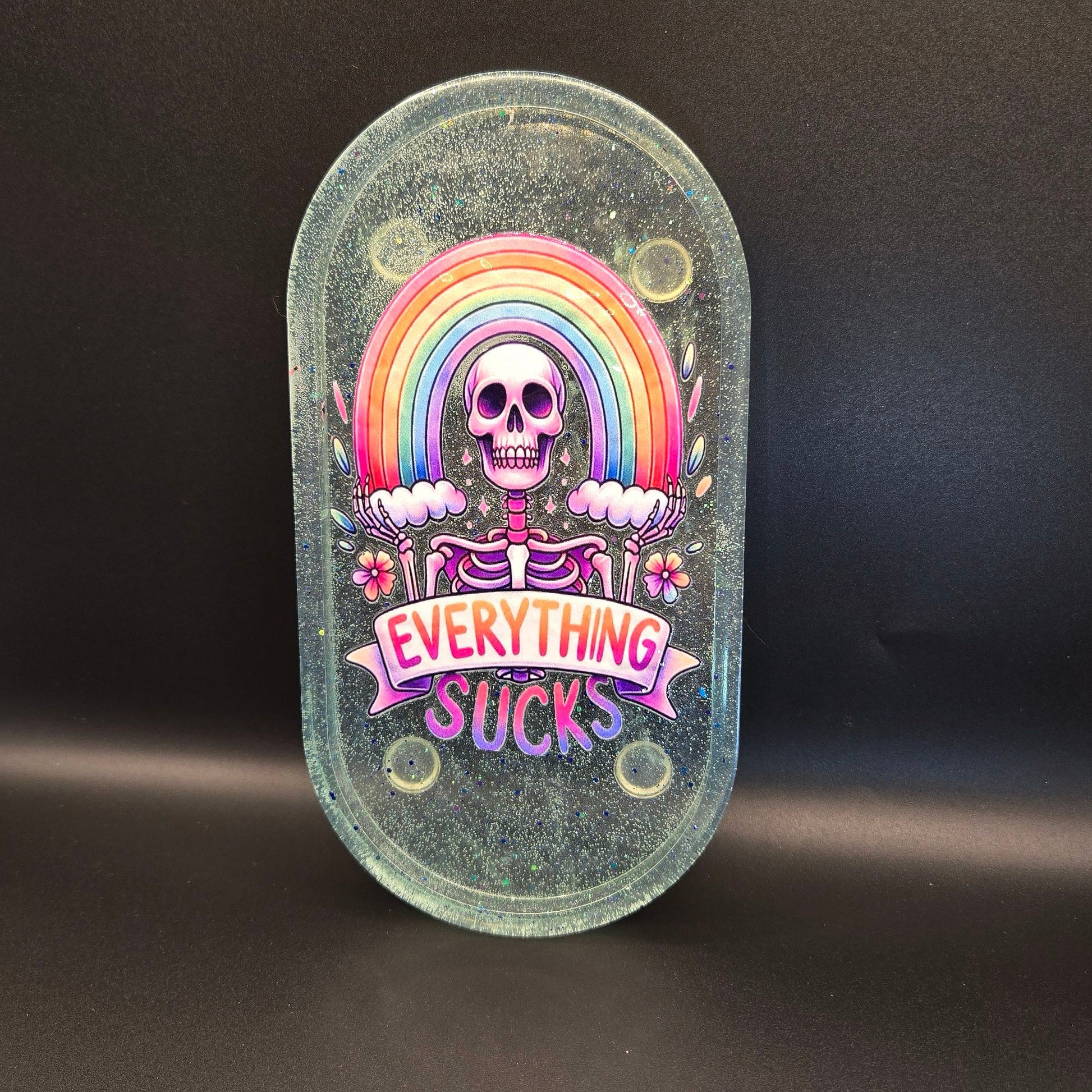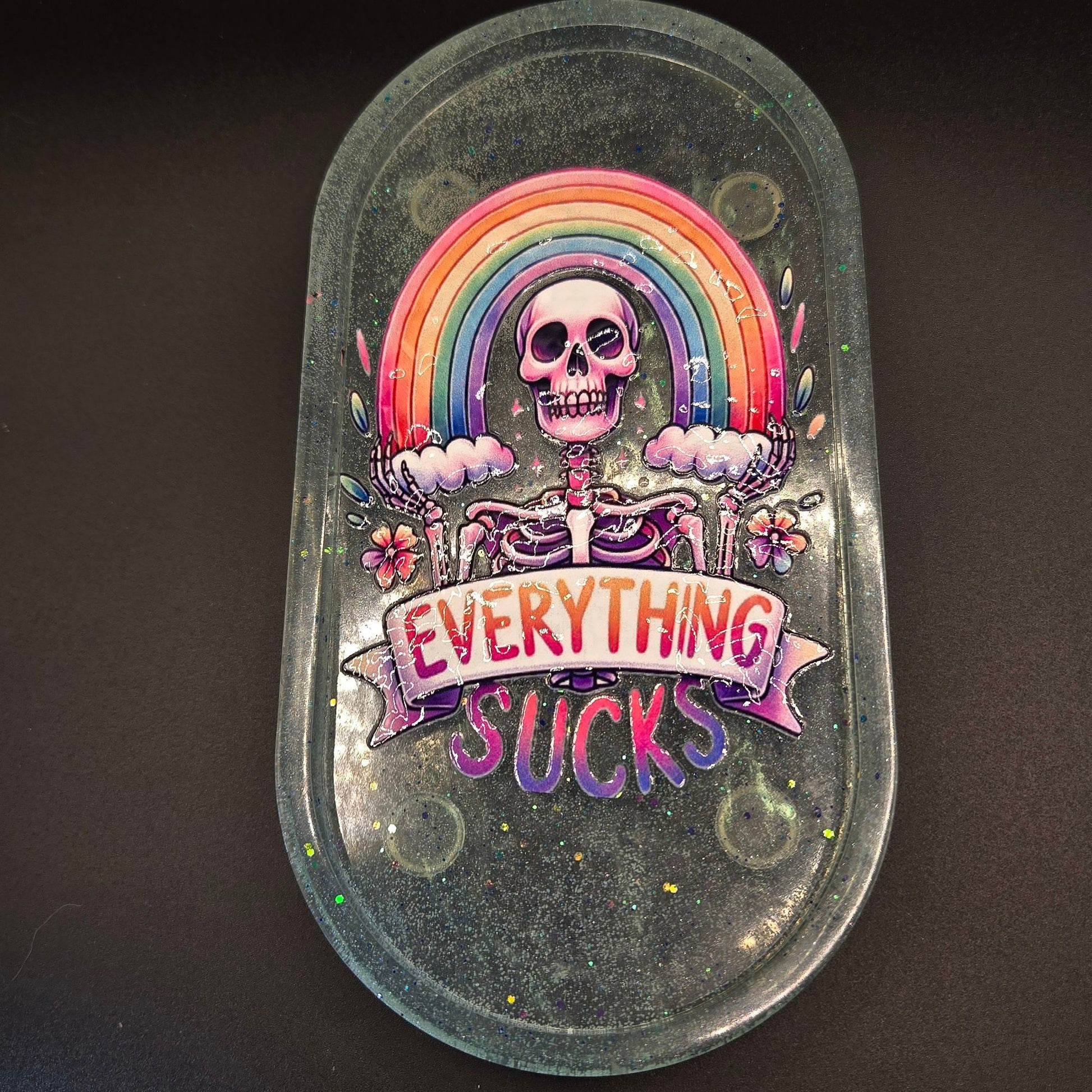 "Everything Sucks" Sparkly Skull & Rainbow Tray