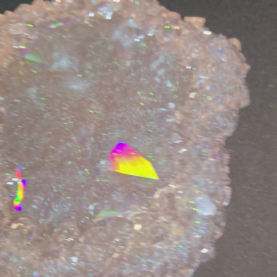 Ignite your space with the fiery shimmer of this handcrafted orange crystal tray. With jagged crystal edges and a flat center that explodes in holographic rainbows, this piece is pure magic under any light. It’s perfect as a tabletop catchall, bedside jewelry tray, or eye-catching décor.